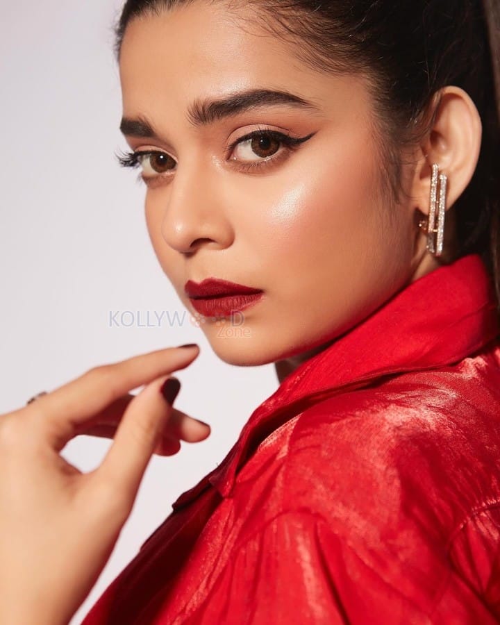 You are viewing an image of A Babysitter Guide to Monster Hunting Actress Mithila Palkar in a Red Leather Co Ord Set Pictures 07 in KollywoodZone.com Photo Gallery