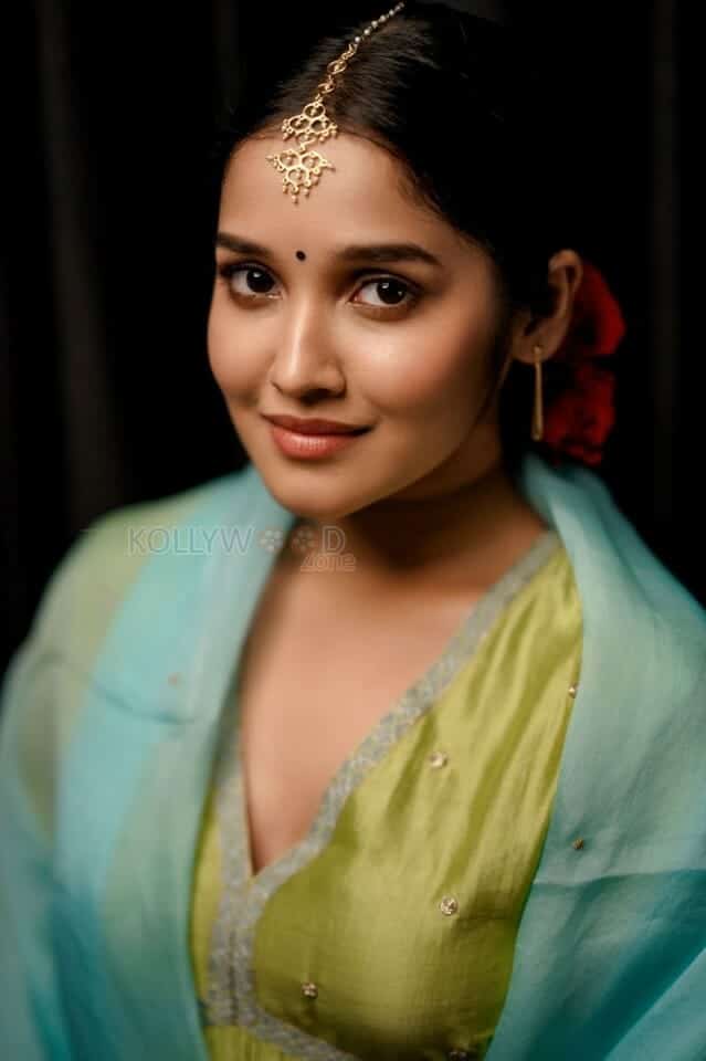 You are viewing an image of Actress Anikha Surendran in a Lime Green Handloom Chanderi Kurta With Chanderi Pants and Dupatta Photos 01 in KollywoodZone.com Photo Gallery