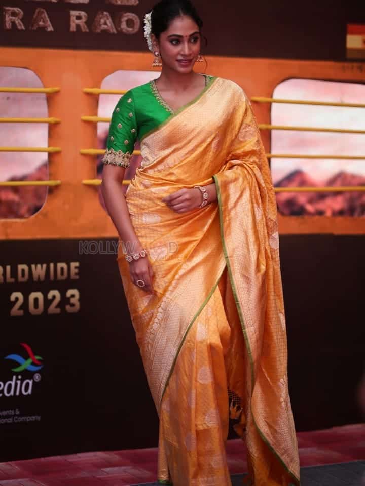 You are viewing a picture of Actress Anukreethy Vas at Tiger Nageswara Rao Pre Release Event Stills 10 in KollywoodZone.com Photo Gallery.