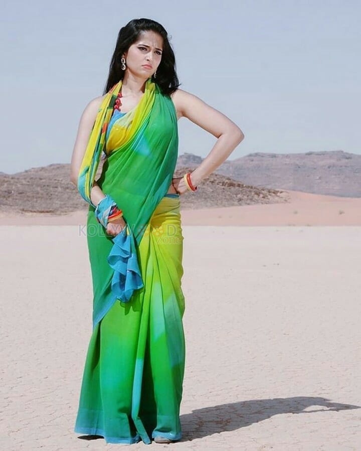 You are viewing an image of Actress Anushka Shetty Sexy Green Saree Photos 04 in KollywoodZone.com Photo Gallery