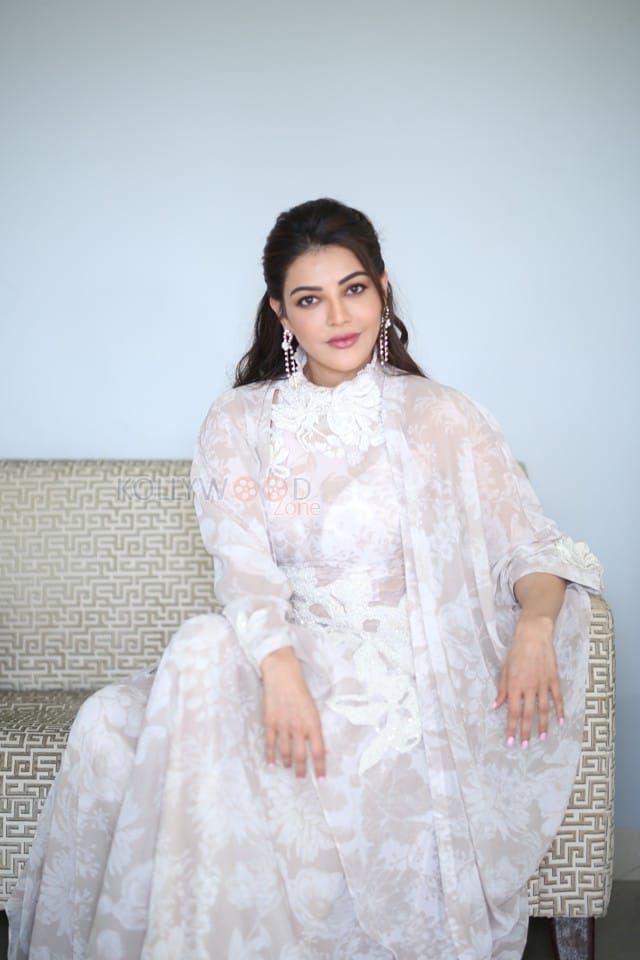 You are viewing a picture of Actress Kajal Aggarwal at Satyabhama Movie Interview Pictures 16 in KollywoodZone.com Photo Gallery.