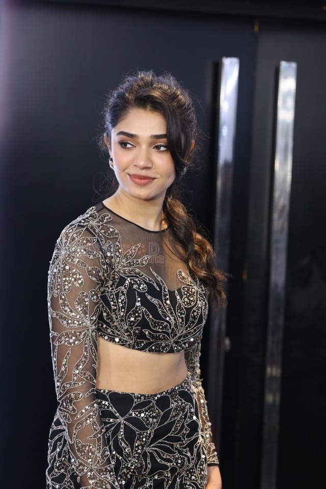 Glam and Gorgeous Krithi Shetty in a Silver and Black Daring Crop Top and Thigh Slit Skirt Photos 02