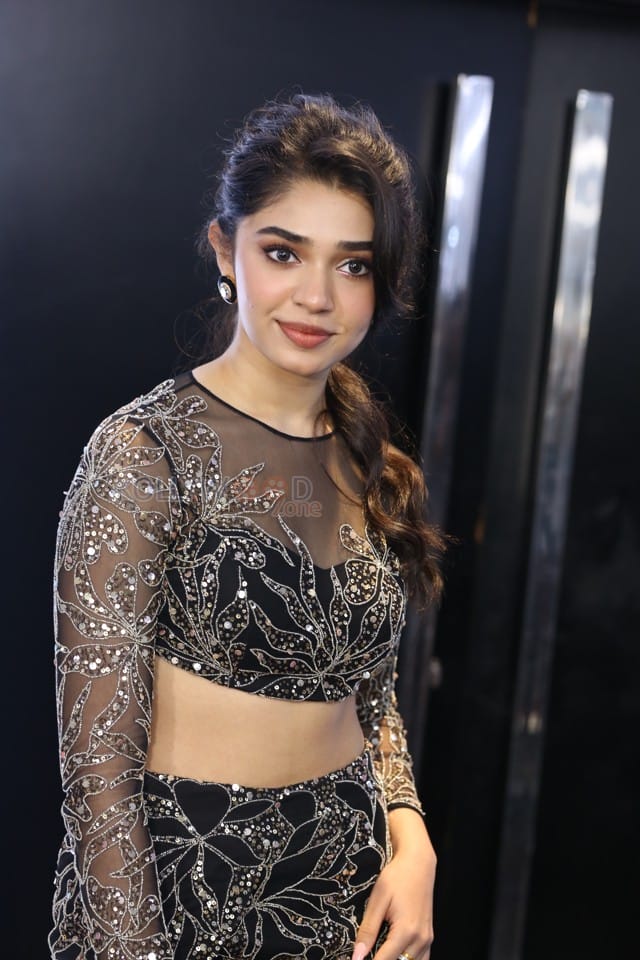 Glam and Gorgeous Krithi Shetty in a Silver and Black Daring Crop Top and Thigh Slit Skirt Photos 03