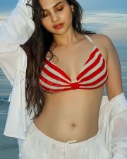 Vishwambara Actress Ramya Pasupuleti in a Red and White Bikini Top with a White Pant and Shirt Photos 02