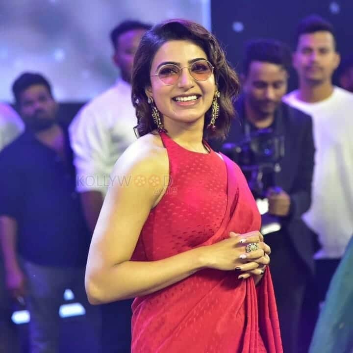 You are viewing an image of Actress Samantha in a Red Saree at Khushi Event Photos 04 in KollywoodZone.com Photo Gallery