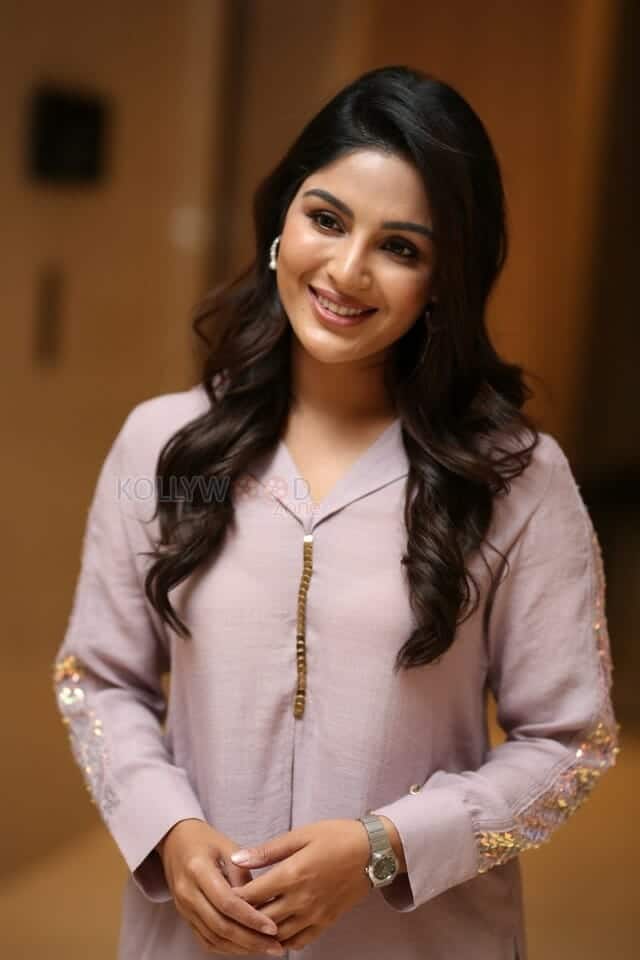 You are viewing an image of Actress Samyuktha Menon at Virupaksha Thank You Meet Pictures 05 in KollywoodZone.com Photo Gallery