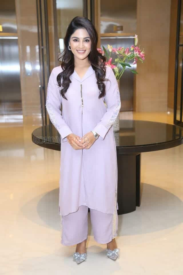 You are viewing an image of Actress Samyuktha Menon at Virupaksha Thank You Meet Pictures 18 in KollywoodZone.com Photo Gallery