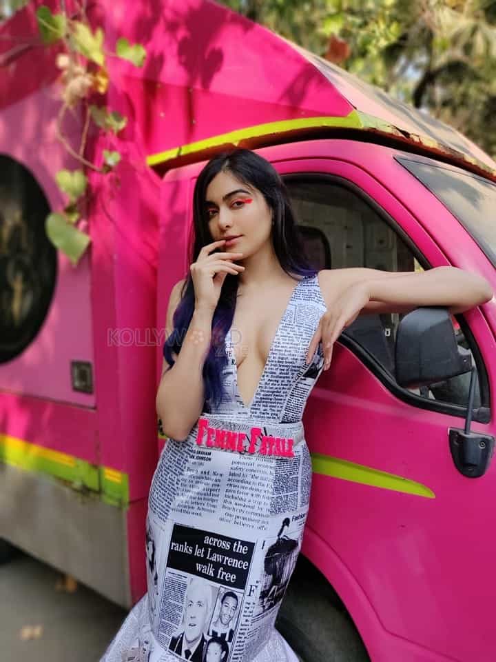 You are viewing a picture of Adah Sharma Wearing A Newspaper Gown And Showing Cleavage On The Red Carpet Stills 04 in KollywoodZone.com Photo Gallery.