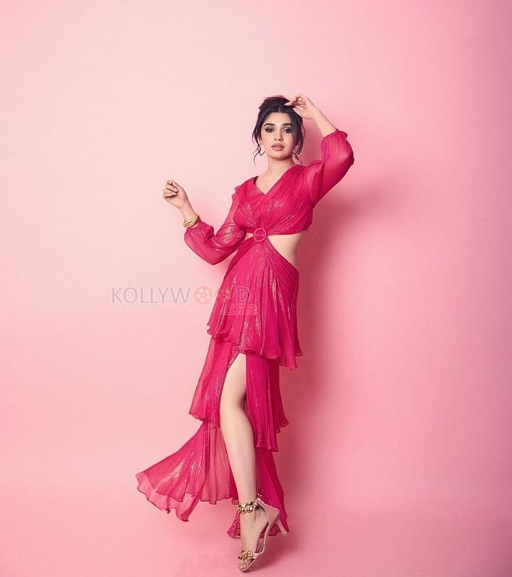 You are viewing a picture of Adorable Krithi Shetty in a Pink Cut Out Thigh Slit Dress Photos 04 in KollywoodZone.com Photo Gallery.