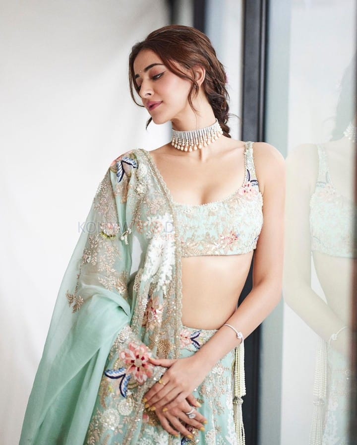 You are viewing an image of Beautiful Ananya Pandey in a Pastel Blue Floral Lehenga at Anant Ambani and Radhika Merchant Wedding Ceremony Photos 08 in KollywoodZone.com Photo Gallery