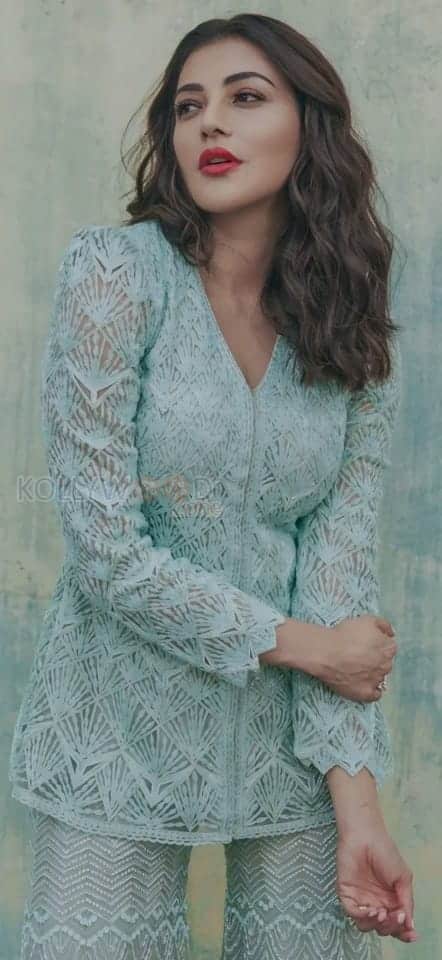 You are viewing an image of Beautiful Kajal Aggarwal in an Aqua Blue Shahara Set Photos 03 in KollywoodZone.com Photo Gallery