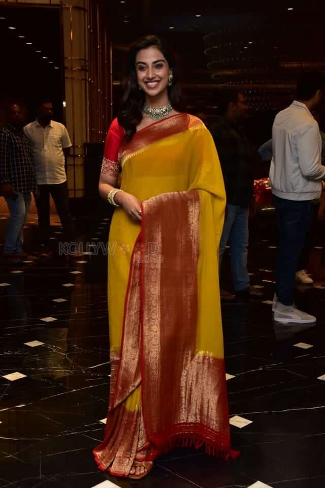 You are viewing a picture of Beautiful Meenakshi Chaudhary in Saree Silk Saree at Hit 2 Teaser Launch Pictures 10 in KollywoodZone.com Photo Gallery.