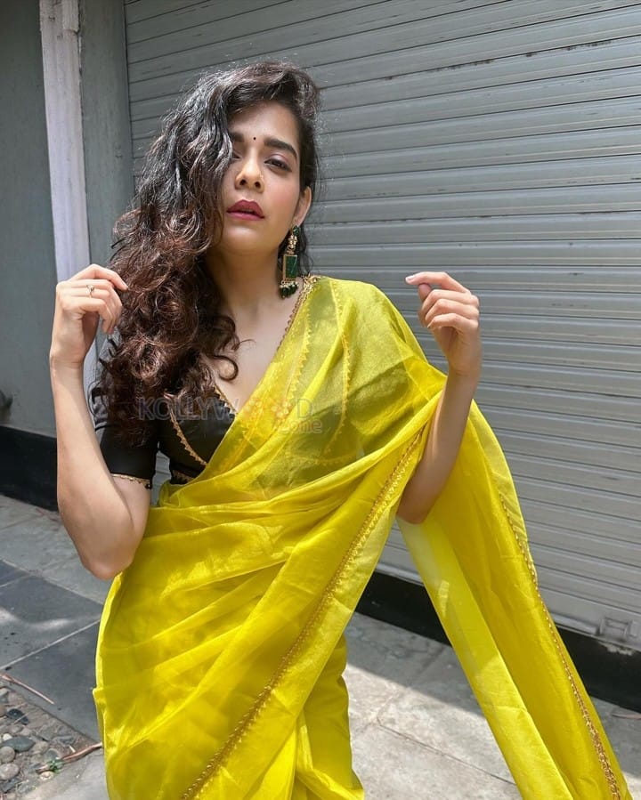 You are viewing a picture of Beautiful Mithila Palkar in a Yellow Silk Saree and Black Blouse Pictures 05 in KollywoodZone.com Photo Gallery.
