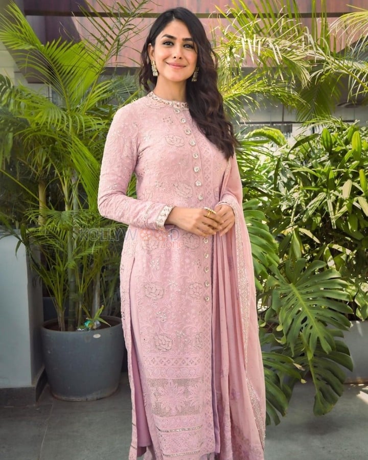 You are viewing an image of Beautiful Mrunal Thakur in a Pink Shahara Set Photos 04 in KollywoodZone.com Photo Gallery