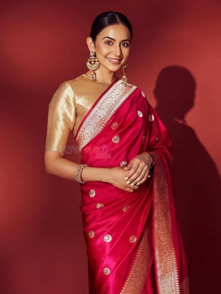 You are viewing an image of Beautiful Rakul Preet Singh in a Red Silk Saree Photos 01 in KollywoodZone.com Photo Gallery