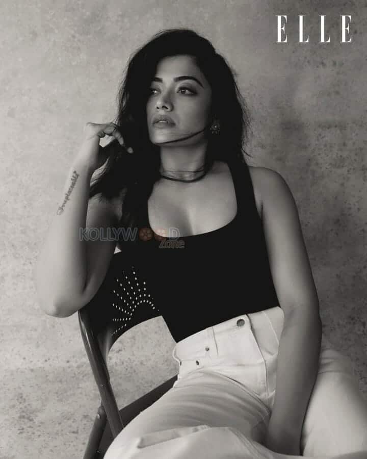 You are viewing a picture of Beautiful Rashmika Mandanna in a Black and White Elle Photoshoot Pictures 01 in KollywoodZone.com Photo Gallery.