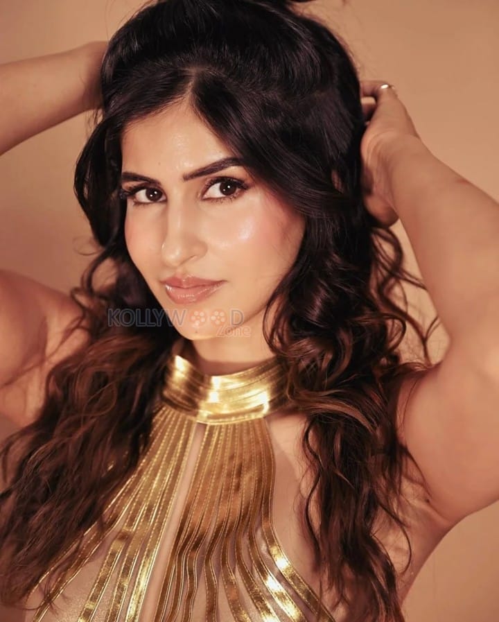 You are viewing a picture of Beautiful Sakshi Malik in a Golden Halterneck Top with a Black Skirt Photos 04 in KollywoodZone.com Photo Gallery.