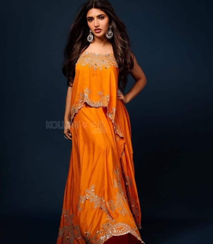 You are viewing a picture of Beautiful Sreeleela in an Orange Embroidered Lehenga Set Photos 01 in KollywoodZone.com Photo Gallery.