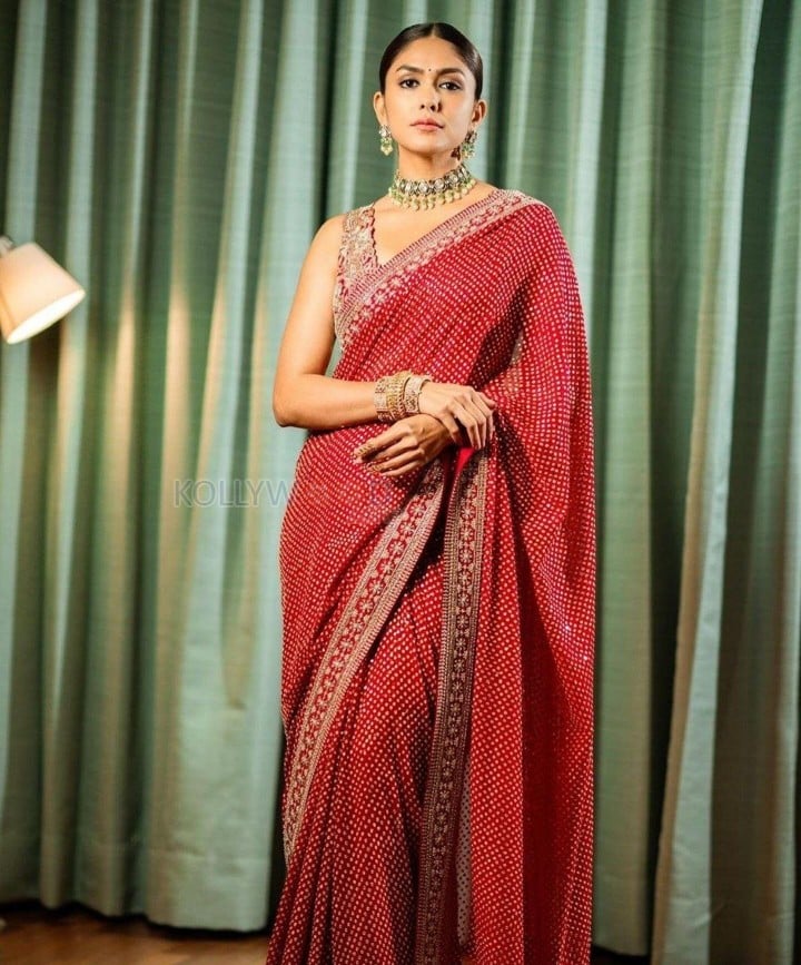 You are viewing a picture of Beauty Mrunal Thakur in a Printed Embroidery Work In Lace Georgette Saree Photos 03 in KollywoodZone.com Photo Gallery.