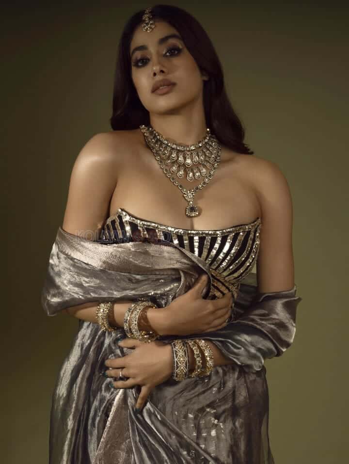 Seductive Janhvi Kapoor in a Gilded Goddess Strapless with Corseted Bodice and Mermaid Silhouette Gown Pictures 01