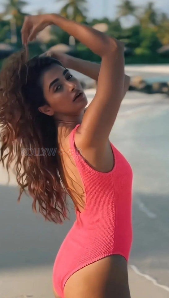 You are viewing a picture of Chocolate Beauty Pooja Hegde in a Hot Pink Bikini Photos 03 in KollywoodZone.com Photo Gallery.