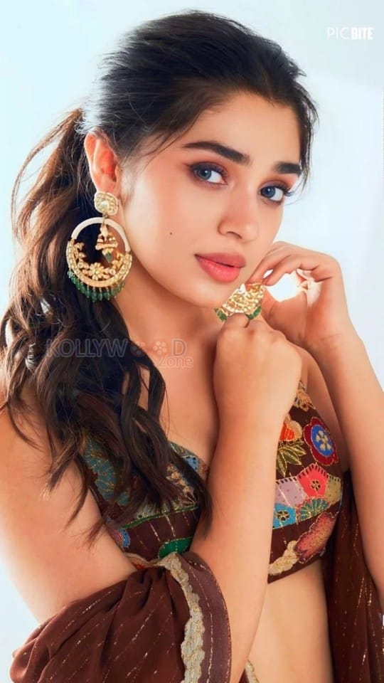 You are viewing a picture of Cute and Beautiful Krithi Shetty in a Lehenga Photos 01 in KollywoodZone.com Photo Gallery.