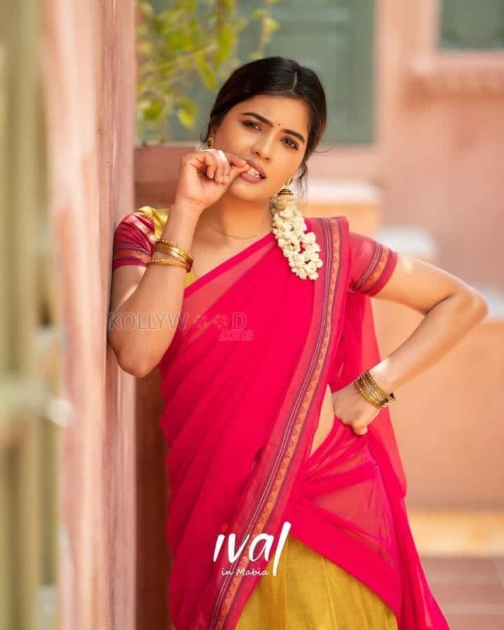 You are viewing an image of Cute and Gorgeous Amritha Aiyer in Red Half Saree Photoshoot Stills 06 in KollywoodZone.com Photo Gallery
