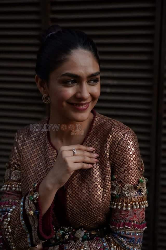 You are viewing a picture of Cute Mrunal Thakur in a Floral Lehenga Photoshoot Stills 03 in KollywoodZone.com Photo Gallery.
