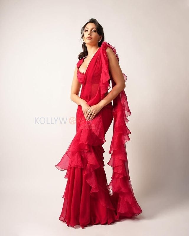 You are viewing an image of Dazzling Actress Nora Fatehi in a Ruffled Saree Photos 02 in KollywoodZone.com Photo Gallery