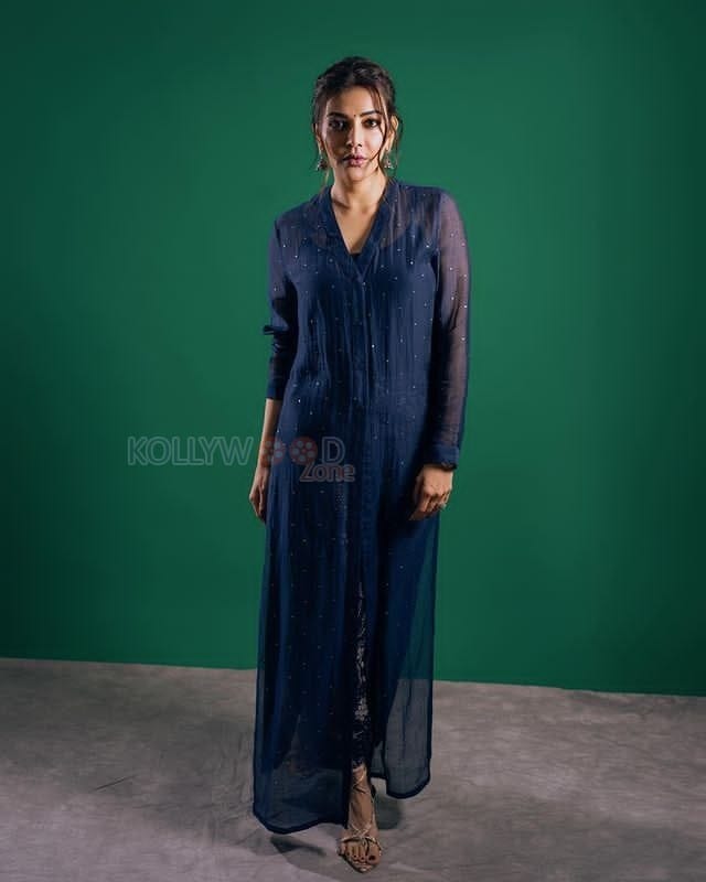 You are viewing an image of Dazzling Kajal Aggarwal in a Blue Kurta Suit with Ballon Blue de Cartier Watch Pictures 03 in KollywoodZone.com Photo Gallery