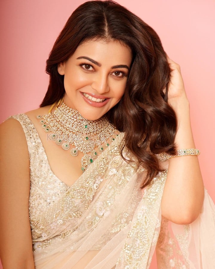 You are viewing an image of Elegant Kajal Aggarwal in a White Saree Pictures 03 in KollywoodZone.com Photo Gallery