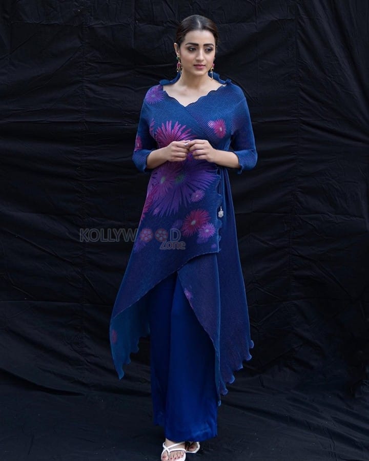 You are viewing an image of Elegant Trisha Krishnan in a Deep Purple Angarkha Kurta Set Photos 01 in KollywoodZone.com Photo Gallery