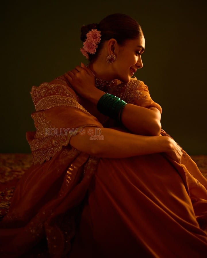 You are viewing an image of Enchanting Mrunal Thakur in a Golden Anarkali Suit Photoshoot Photos 04 in KollywoodZone.com Photo Gallery