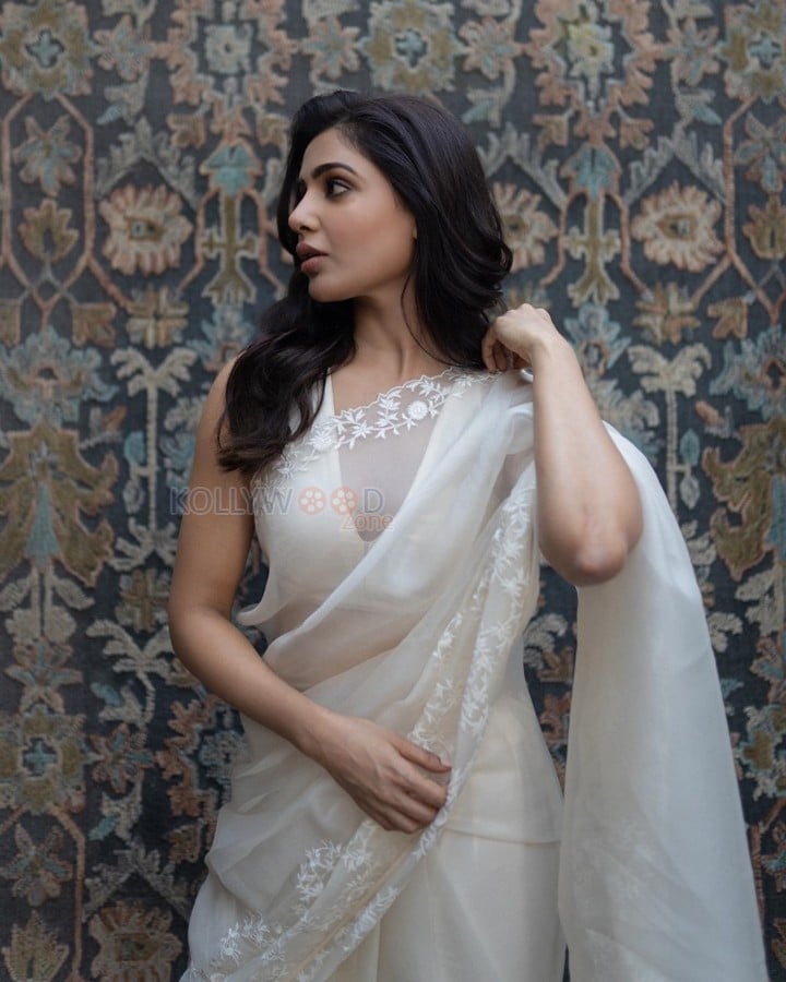 You are viewing an image of Graceful Diva Samantha in an Ivory Transparent Saree Pictures 01 in KollywoodZone.com Photo Gallery