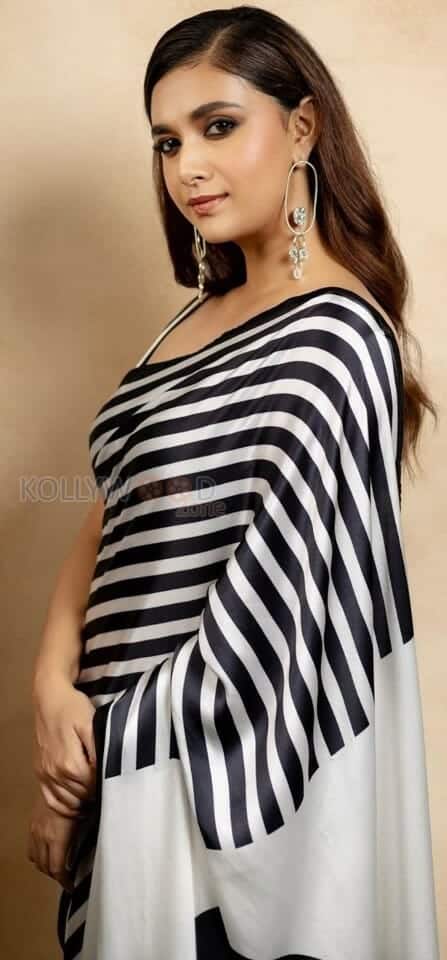 You are viewing a picture of Heroine Keerthy Suresh in a Black and White Saree Photos 02 in KollywoodZone.com Photo Gallery.