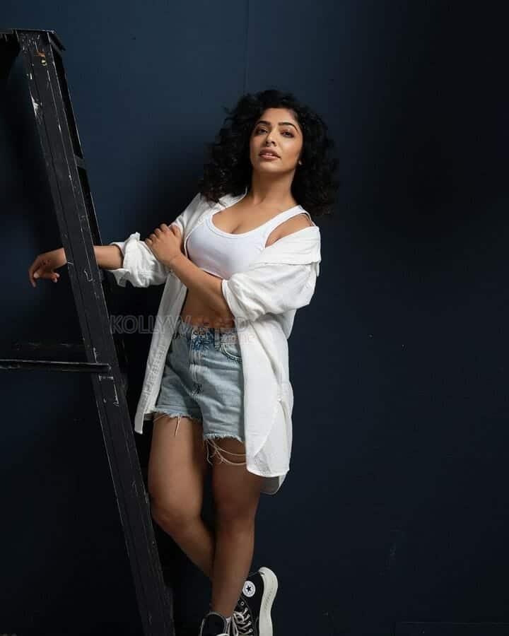 You are viewing an image of Heroine Rima Kalingal in a White Sports Bra and Denim Shorts Photoshoot Pictures 06 in KollywoodZone.com Photo Gallery