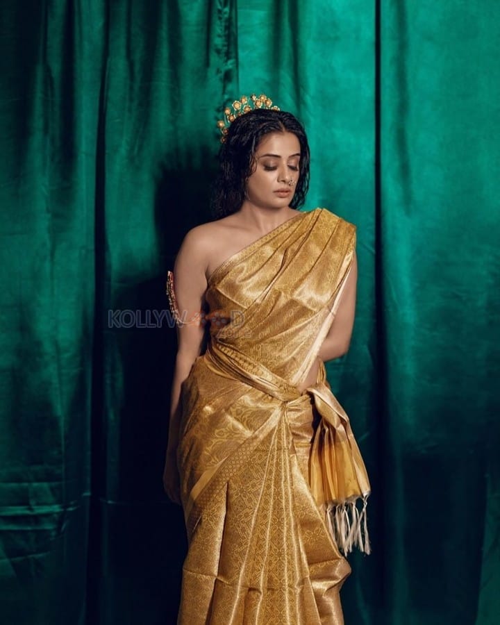 You are viewing an image of Hot Priyamani in a Gold Saree without a Blouse Photos 04 in KollywoodZone.com Photo Gallery