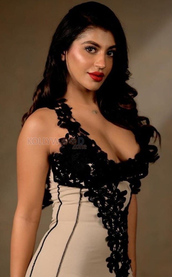 You are viewing an image of Hot Yashika Aannand Breast Cleavage in a Backless Floral Deep V Suspender Dress Photo 01 in KollywoodZone.com Photo Gallery