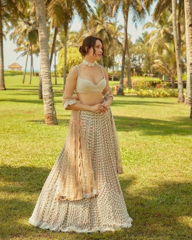 You are viewing an image of Irresistible Pragya Jaiswal in a Pearl Lehenga at Rakul Preet Singh Goa Wedding Photos 03 in KollywoodZone.com Photo Gallery