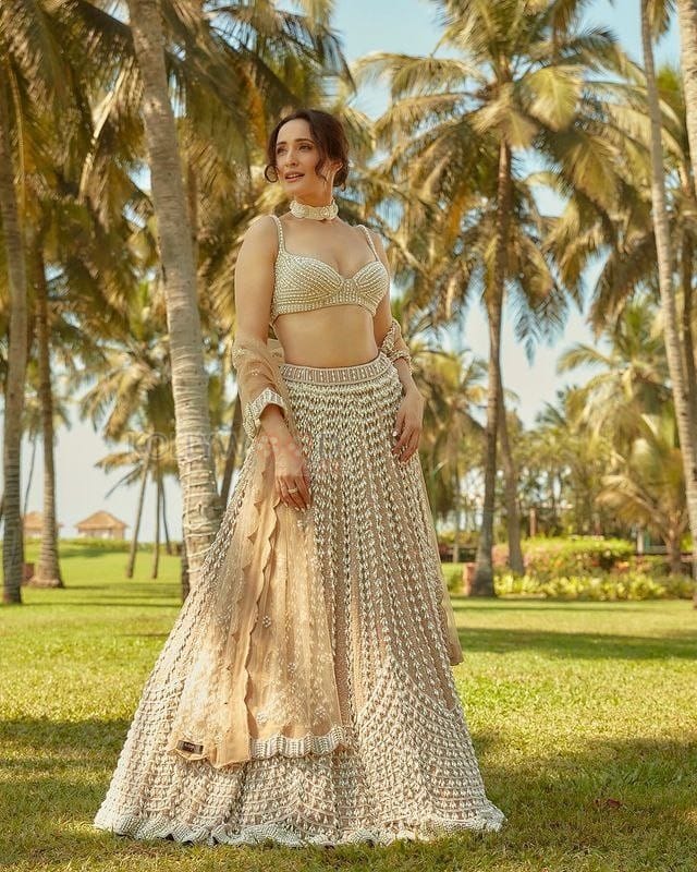 You are viewing an image of Irresistible Pragya Jaiswal in a Pearl Lehenga at Rakul Preet Singh Goa Wedding Photos 07 in KollywoodZone.com Photo Gallery