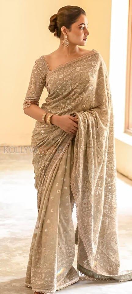 You are viewing a picture of Lovely Priyanka Mohan in a Chikankari Saree Photos 02 in KollywoodZone.com Photo Gallery.