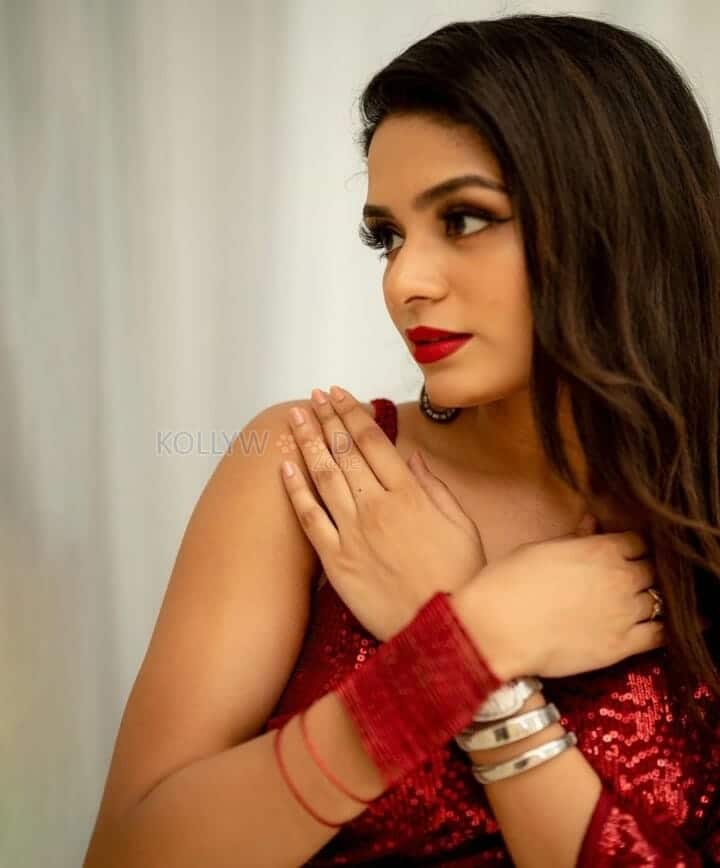 You are viewing a picture of Mesmerizing Aditi Shankar in Red Saree Photos 04 in KollywoodZone.com Photo Gallery.