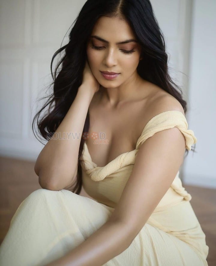 You are viewing a picture of Passionate Malavika Mohanan in a Yellow Bodycon Dress Photos 09 in KollywoodZone.com Photo Gallery.