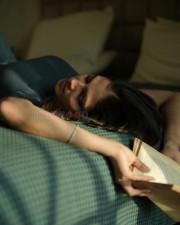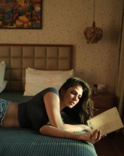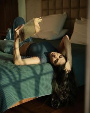Sensual Malavika Mohanan in a Black Turtle Neck Top with Classic Blue Denim Lying on the Bed Photos 09