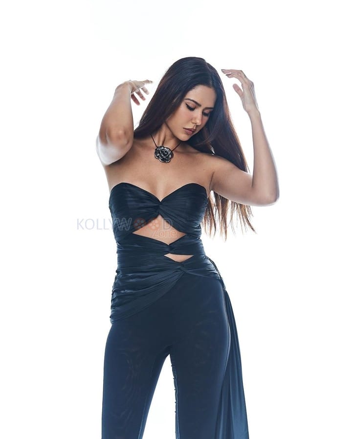 You are viewing a picture of Punjabi Actress Sonam Bajwa in a Black Off Shoulder Top with a Bell Bottom Styled Pant Photos 02 in KollywoodZone.com Photo Gallery.