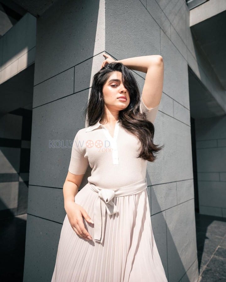 You are viewing an image of Radiant Beauty Krithi Shetty in a Cream Coloured Top with Matching Skirt and Pink Lipstick Photos 02 in KollywoodZone.com Photo Gallery