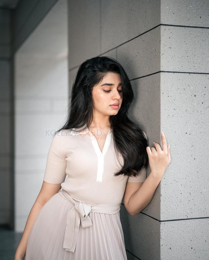 You are viewing an image of Radiant Beauty Krithi Shetty in a Cream Coloured Top with Matching Skirt and Pink Lipstick Photos 03 in KollywoodZone.com Photo Gallery