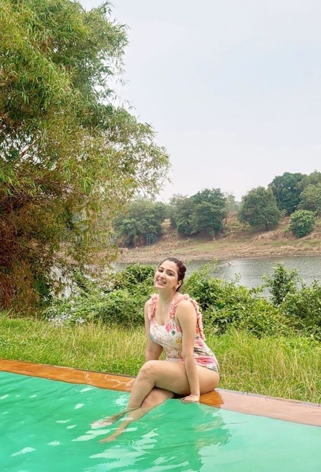 You are viewing a picture of Sexy Eshanya Maheshwari in an One Piece Swimsuit Pool Photos 02 in KollywoodZone.com Photo Gallery.