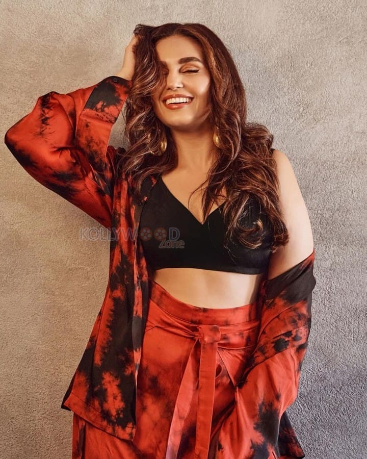 You are viewing an image of Sexy Huma Qureshi in a Red and Black Pants and Shirt with a Crop Top Photos 04 in KollywoodZone.com Photo Gallery