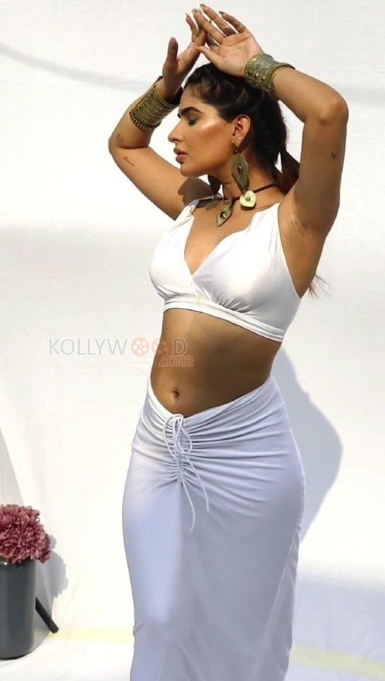 You are viewing an image of Sexy Karishma Sharma in a White Shapewear Picture 01 in KollywoodZone.com Photo Gallery